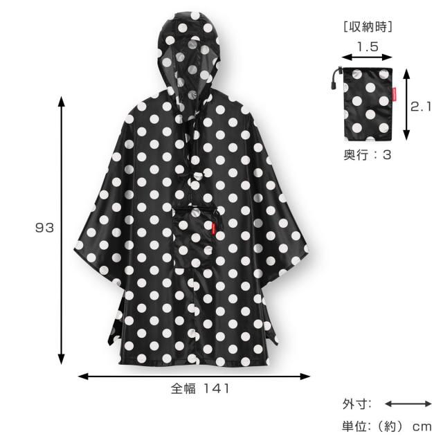 カッパ reisenthel MINI MAXI PONCHO DOTS WHITE ミニマキシ ポンチョ ( 雨具 レインポンチョ レインコート レディース 撥水加工 折り畳み レインウェア 自転車 コンパクト アウトドア ドット おしゃれ ライゼンタール )