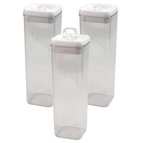 | ・3個セット ・サイズ:(約)10×10×30cm(1.9L) ・耐熱温度:-20〜70度 ・(材質)本体:AS樹脂 ・フタ:上部PP、下部HIPS ・フタつまみ:PCTG、バネ:ステンレス、パッキン:シリコン |