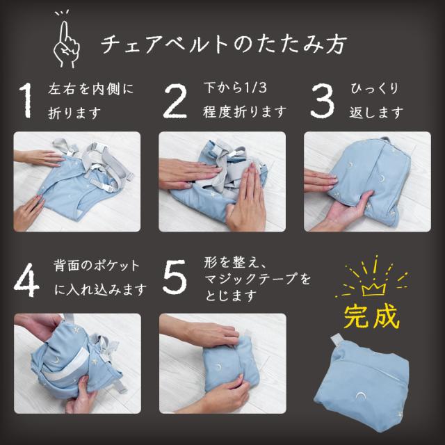 チェアベルト ホールド 肩ベルトあり 肩ベルトなし 転落防止 ベビー 赤ちゃん お座り補助 チェア お食事 椅子 持ち運び 丸洗い 撥水加工 かわいい 月 星 さくらんぼ コンパクト まとめゴム 男の子 女の子 ギフト プレゼント 旅行 お出かけ たためる Hugmuu ハグムー