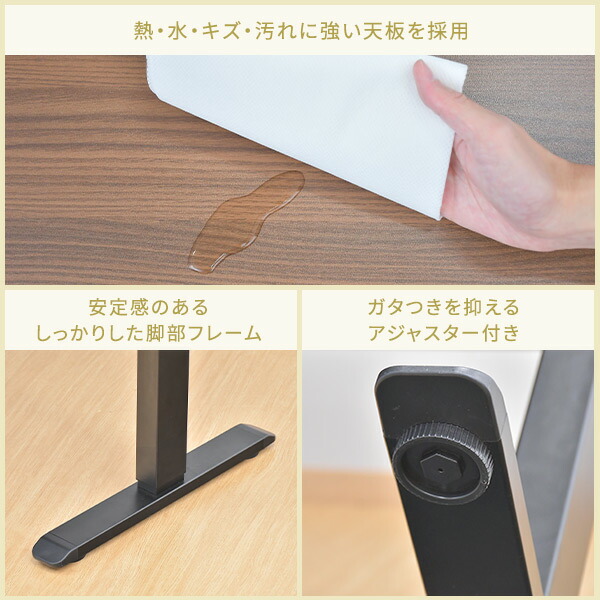 | 材質 | 天板:合成樹脂化粧パーティクルボード(メラミン樹脂) 脚部:スチール(粉体塗装) |