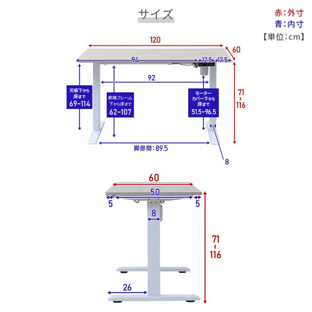 | 本体サイズ | 幅120×奥行60×高さ71-116cm 重量27kg |