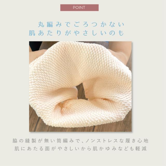 ・脇の縫製が無い筒編みで、ノンストレスな履き心地。