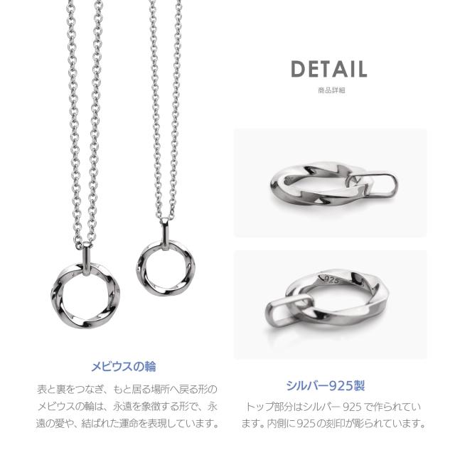 ネックレス ペア ペアネックレス シルバー925 金属アレルギー対応 メビウスの輪ペアアクセサリーシンプル pe2248-pair
