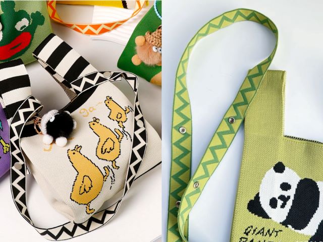 【話題のパンダモチーフ ニットマルシェバッグ】