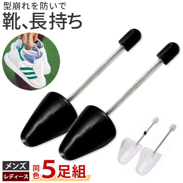 シューキーパー バネ式 5足分セット メンズ レディース ブラック クリア 靴ケア用品 型崩れ防止 シューケア 型崩れを防ぐ