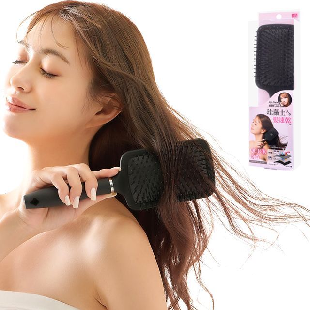 珪藻土パッドで濡れ髪速乾!ドライヤー時間短縮!クイックドライヘアブラシ (節電対策 ブラッシング ダメージヘア)
