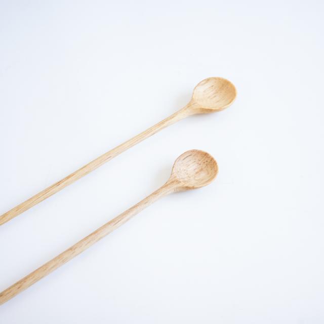 金属のカトラリーと違い、天然目(ラバーウッド)をハンドメイドで作っているのでガチャガチャという音も鳴らないし、食器を傷つけたりしないのでおすすめです。