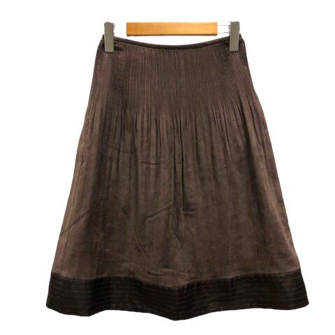 【中古】ボンサンス BonSens スカート フレア ギャザー スエード サテン ひざ丈 36 茶 ブラウン レディース