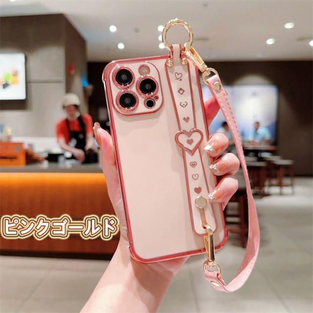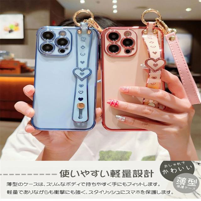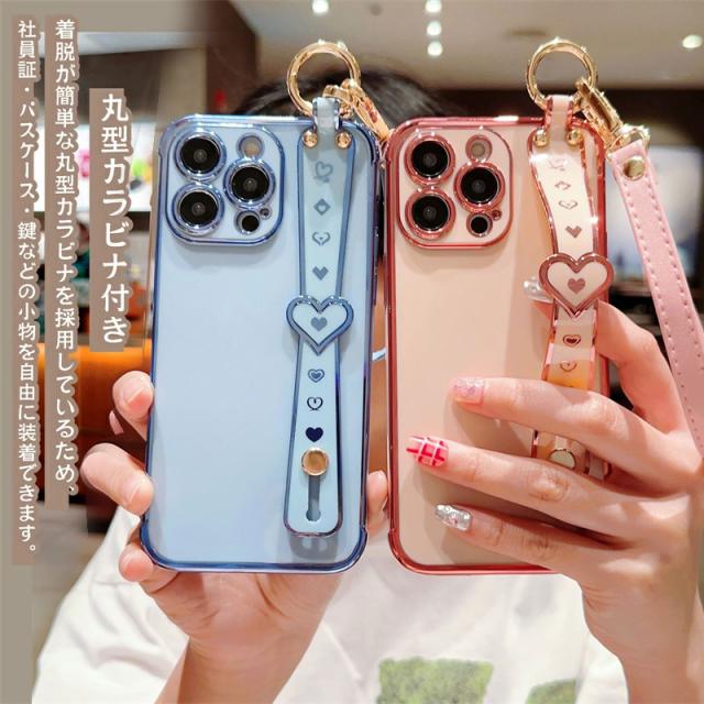 iphone8 プラス ケース 軽量! iphone7 15plus ケース 耐衝撃 持ちやすい アイフォン iPhone 15 14Pro 13 12 mini 11ProMax XS XR 8 SE 第3世代 携帯 ケース スマホケース カバー ストラップ 落下防止 ベルト ハンド付き かわいい 可愛い ハート柄 韓国 薄 TPU バッグ風