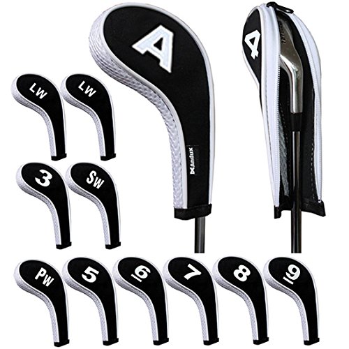 Andux 番手プリント ゴルフ アイアンカバー ファスナー付き ロングネック 12個/セット ブラック+ホワイト