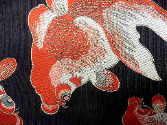 シックな黒地に鮮やかな金魚のデザインが映える、