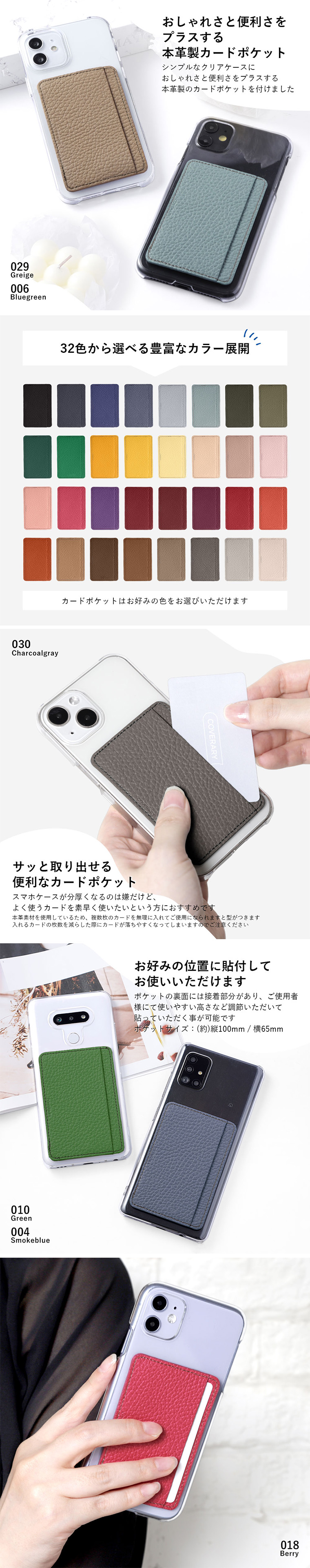 シンプルなクリアケースにおしゃれさと便利さをプラスする本革製のカードポケットを付けました