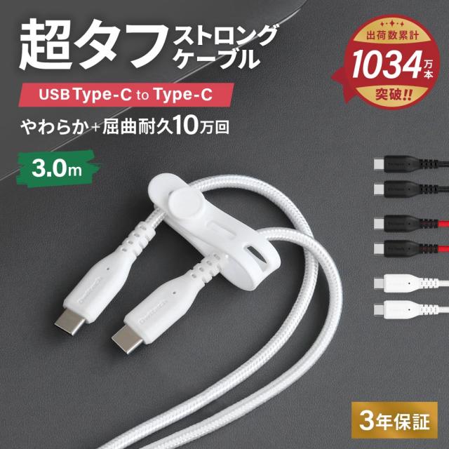 Type-C to Type-Cケーブル 3m やわらか超タフで断線に強い 耐屈曲10万回以上 PD60W充電/データ転送