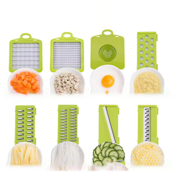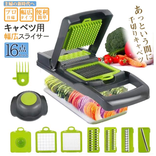 ポイント超超祭 スライサー セット 多機能 16点セット 野菜 みじん切り 千切り 薄切り 水切り皿 果物 調理器セット せん切り器 グリーン キッチン 便利グッズ