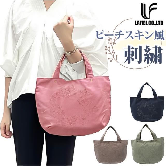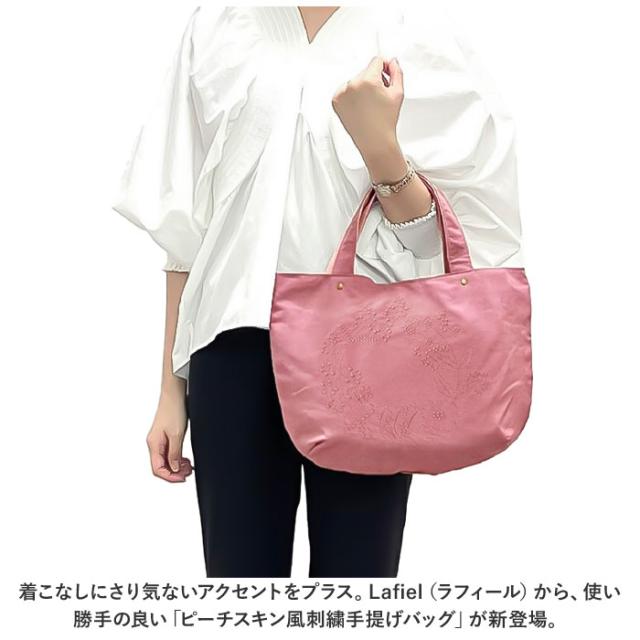 | 商品名 | ラフィール ピーチスキン風刺繍手提げバッグ |