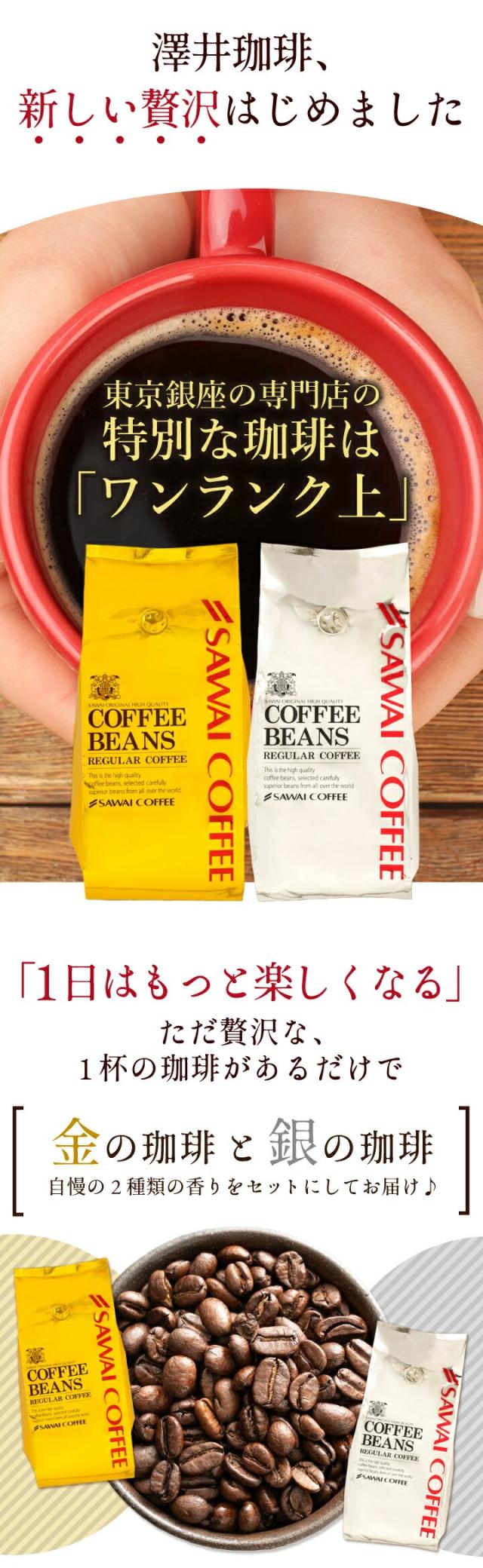 澤井珈琲 焙煎したて コーヒー豆 800g コーヒー専門店 80杯分 金と銀の珈琲 飲み比べ セット 珈琲豆 送料無料 コーヒー 福袋 お試し 400gx2袋 中挽き/豆のまま 金と銀 プレミアム ソルブレンド ルナブレンド