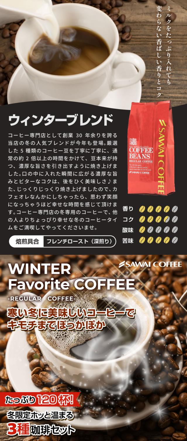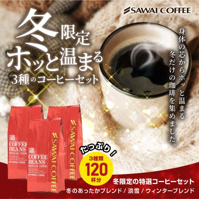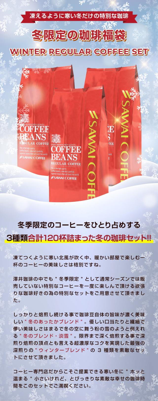 コーヒー豆 コーヒー粉 珈琲豆 冬の限定ブレンド 飲み比べ 福袋 1.2kg 400gx3袋 中挽き/豆のまま 焙煎したて 大容量 セット 120杯分 澤井珈琲