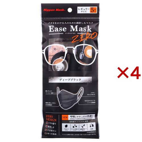 イーズマスク ゼロ レギュラーサイズ ディープブラック(5枚入×4セット)[不織布マスク]