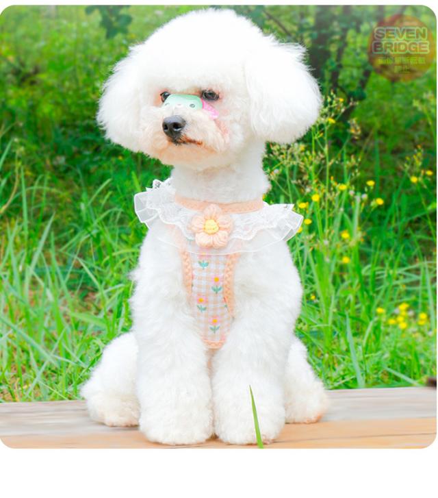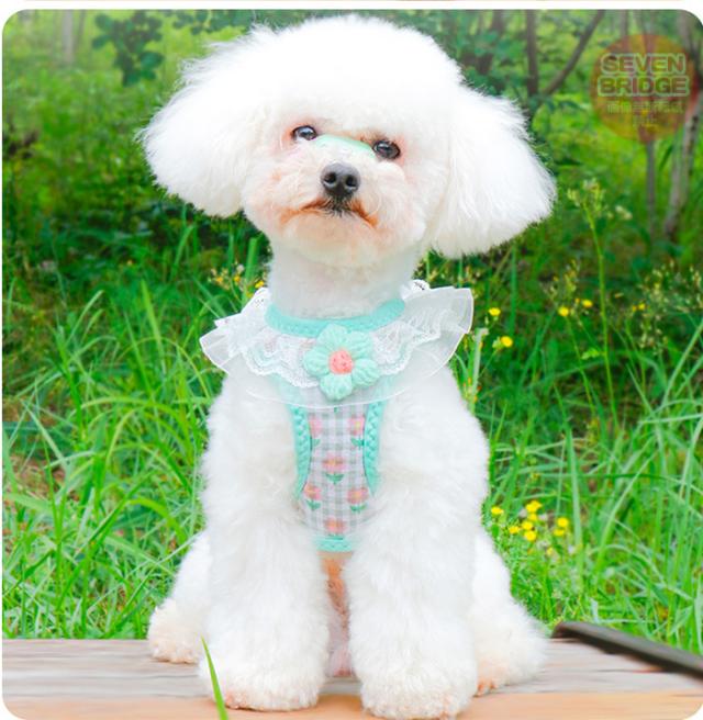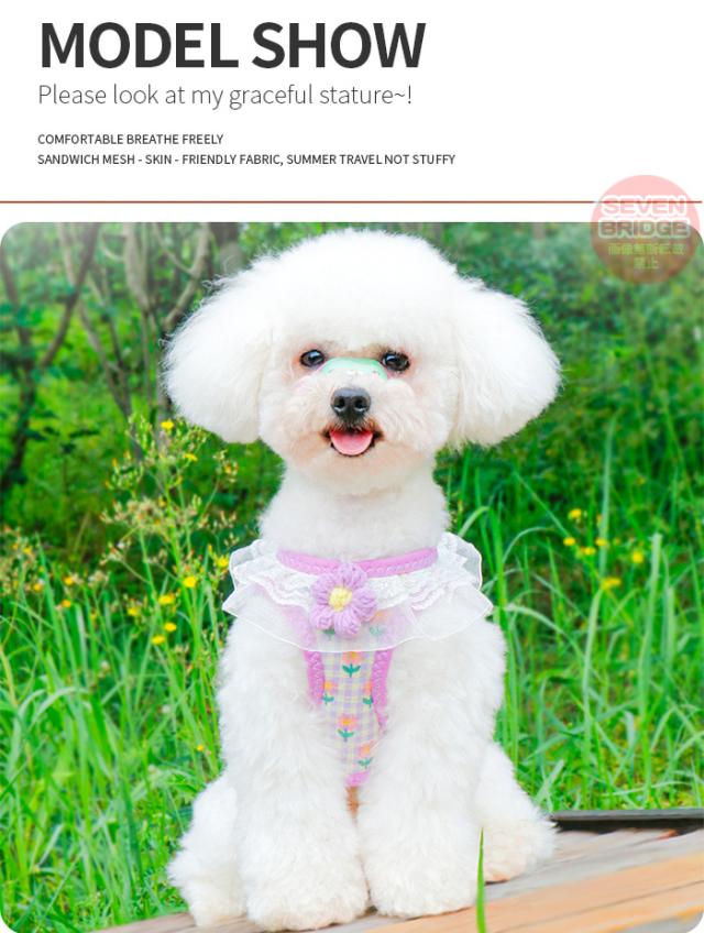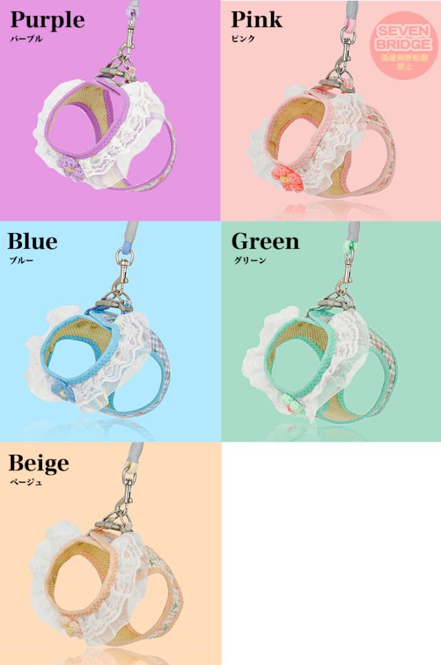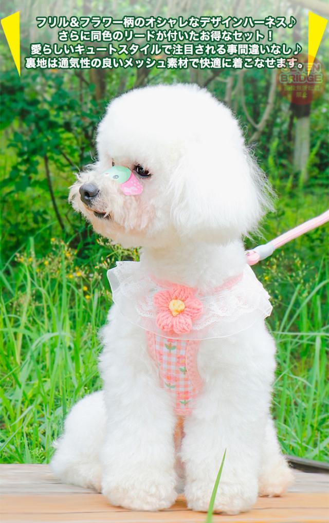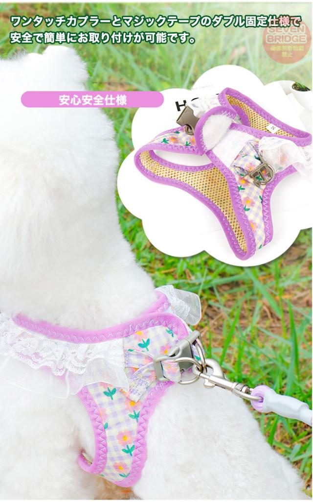 犬 猫 ハーネス リード付 フリル フラワー カラフル ウェアハーネス ペット 服 胴輪 キャット ドッグ h0543