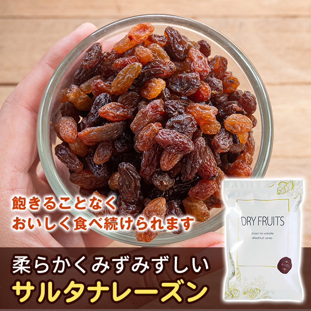 ・さまざまな栄養を多く含むサルタナレーズンは、おいしく手軽に栄養補給できるレーズンです。