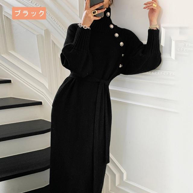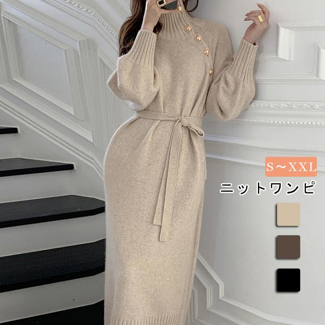 ニットワンピース 秋冬 レディース ドロングワンピース リボン 長袖 ストレッチ 大きいサイズ 暖かい 秋服 送料無料