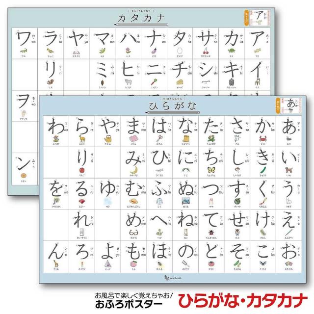 お風呂ポスター ひらがな・カタカナの2枚セット B3サイズ(364×515mm) 【日本製 学習ポスター】お風呂 知育 ポスター お風呂 おもちゃ 中学受験 防水 キッズ 教材 日本製 勉強 幼児 小学生 小学3年 男の子 女の子