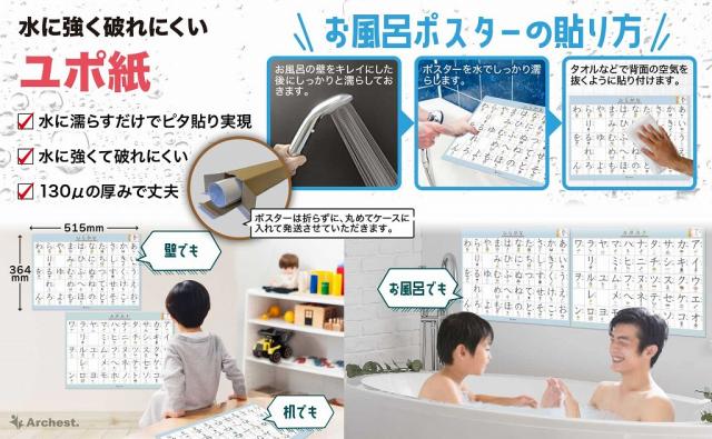 お風呂のリラックスタイムに楽しいポスターを見ることで学習が楽しくなります。学習モチベーションの向上も期待できます。