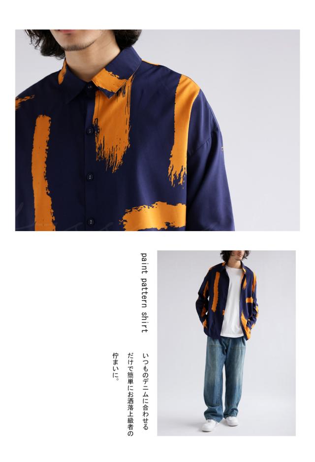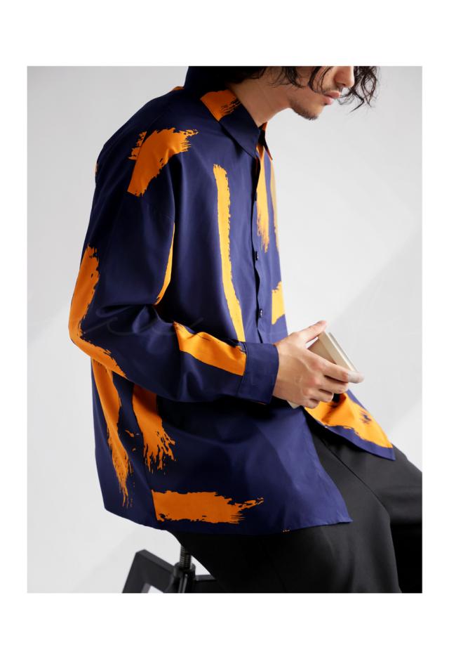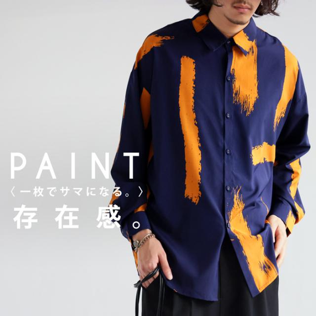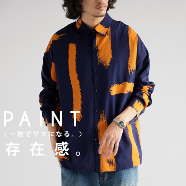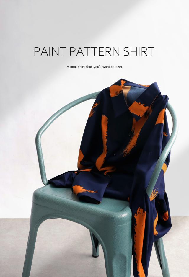 高級感のある滑らかな生地を使用した、印象的な洒落感つくるペイント柄シャツ。