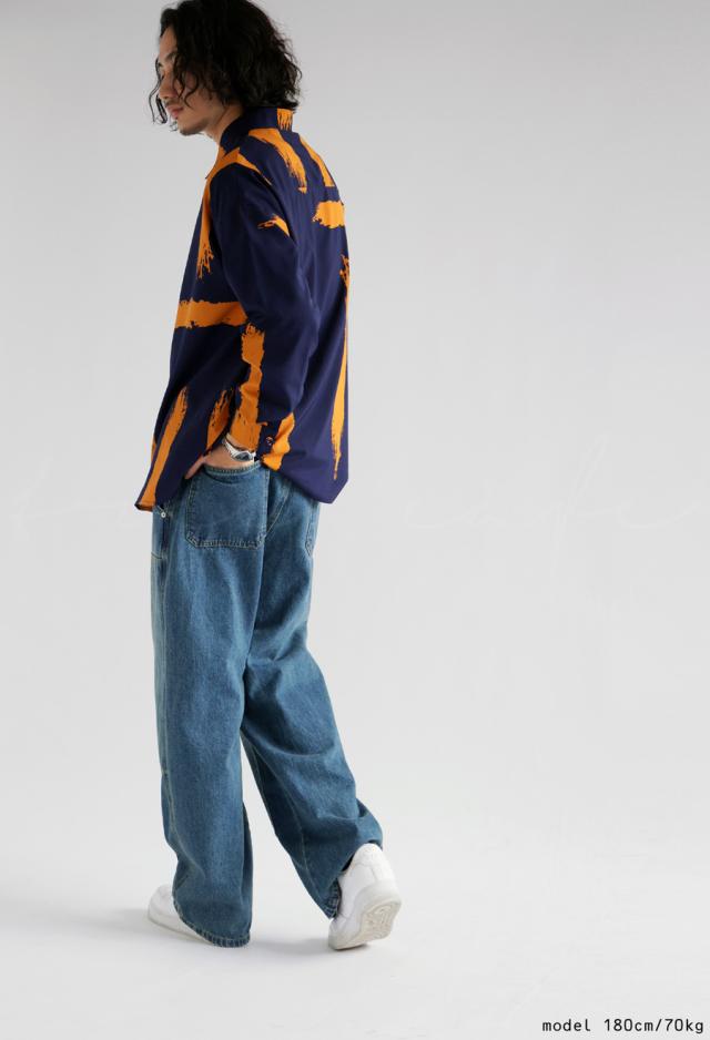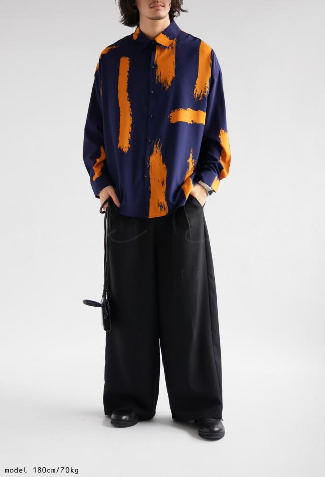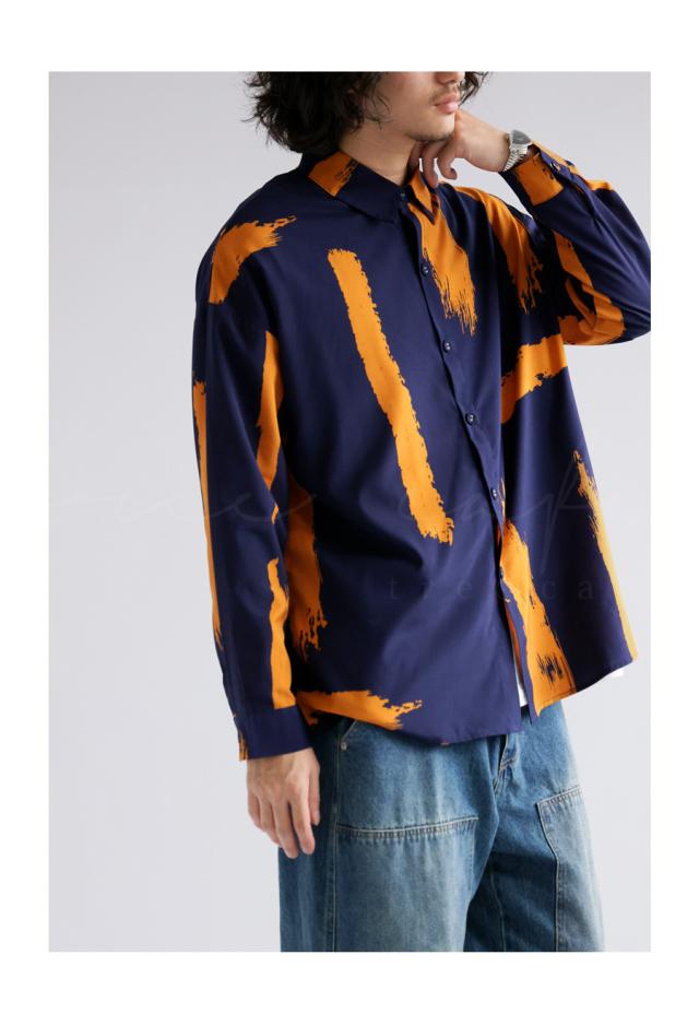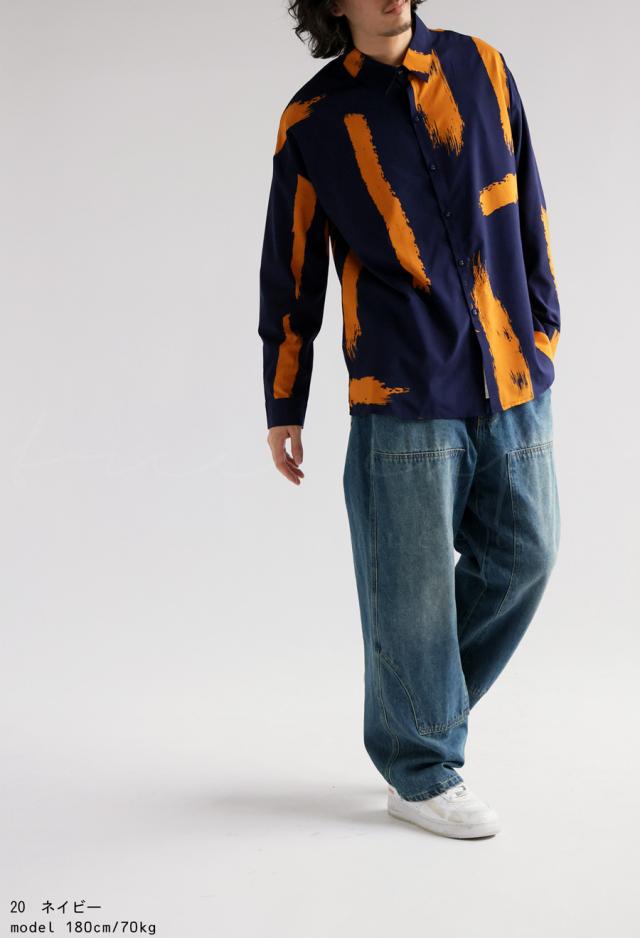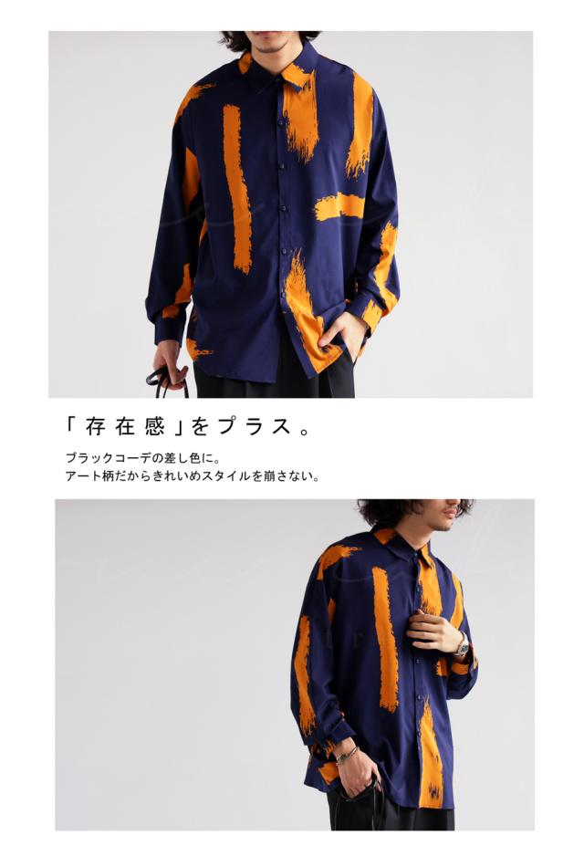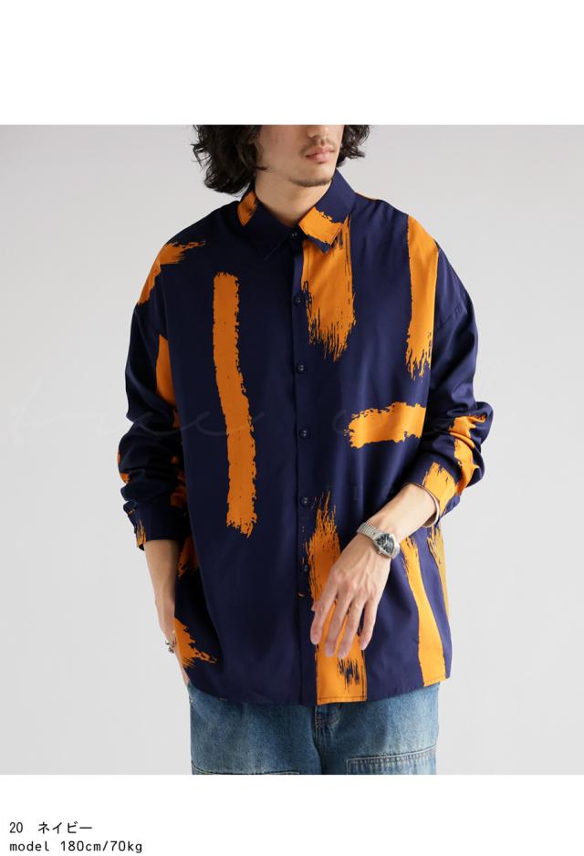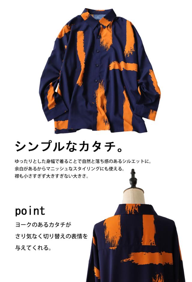 my-00010z 長袖 柄 ペイント柄 柄シャツ レギュラーカラー 前開き 配色 ゆったり モード ハイセンス 落ち感 薄手 きれいめ 高級感 体型カバー オーバーサイズ 大きめ ユニセックス