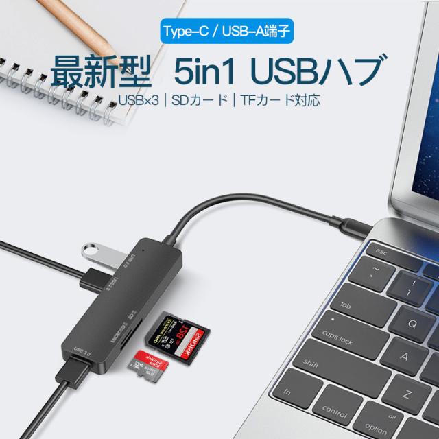 5in1USBハブ(ドッキングステーション)、USB3.0搭載、SD/MicroSDカード対応。