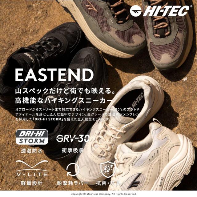 送料無料 ハイテック メンズ/レディース ハイキング スニーカー HT HKU16 EASTEND WP ブラック HI-TEC 透湿防水 抗菌防臭 軽い 衝撃吸収 軽量 アウトドア シューズ 靴 黒 母の日 父の日