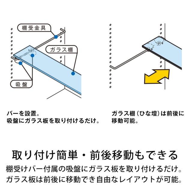 材質 | ガラス棚板:ガラス / 棚受金具:鉄 / 吸盤:PVC |