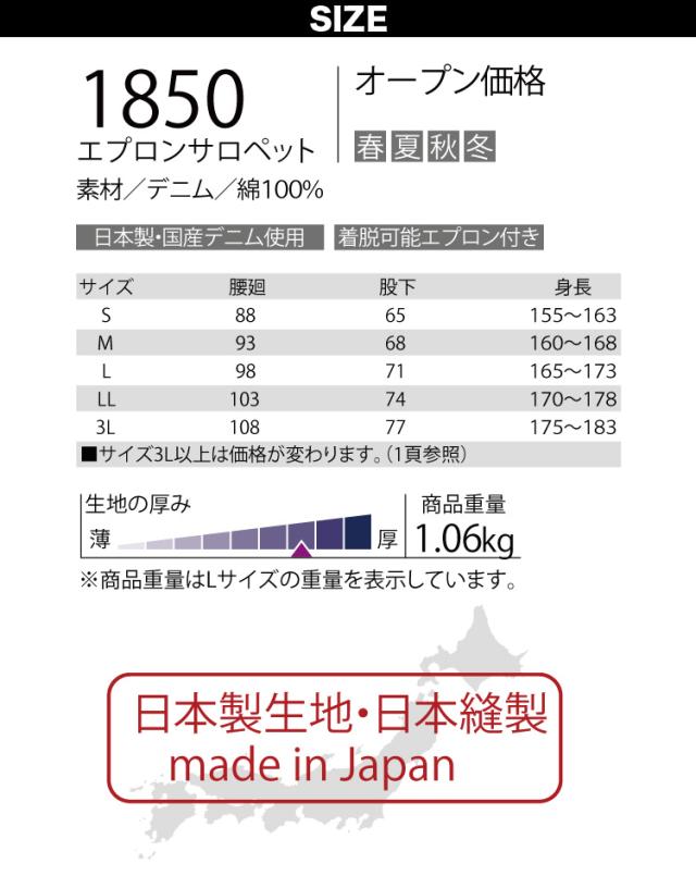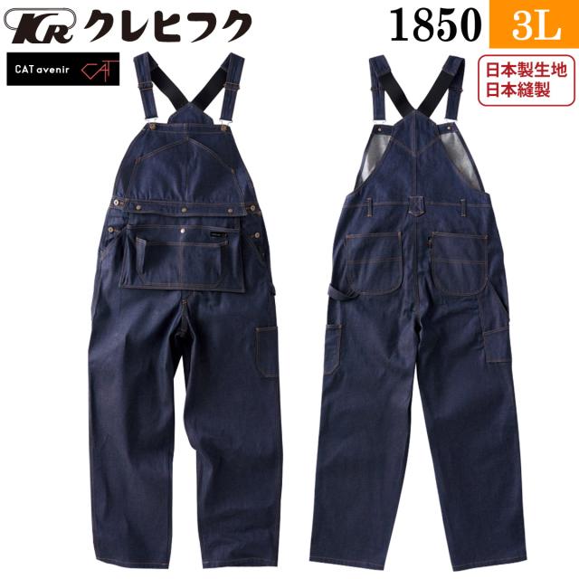 クレヒフク エプロンサロペット 1850 3L 大きいサイズ デニム 綿100% おしゃれ オーバーオール カジュアル オールシーズン 作業服 作業着 レディス メンズ KURE
