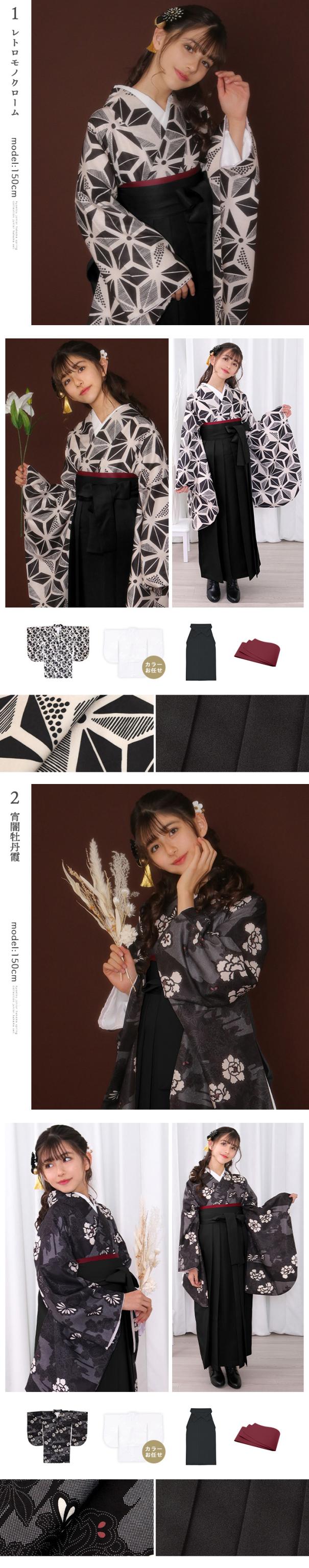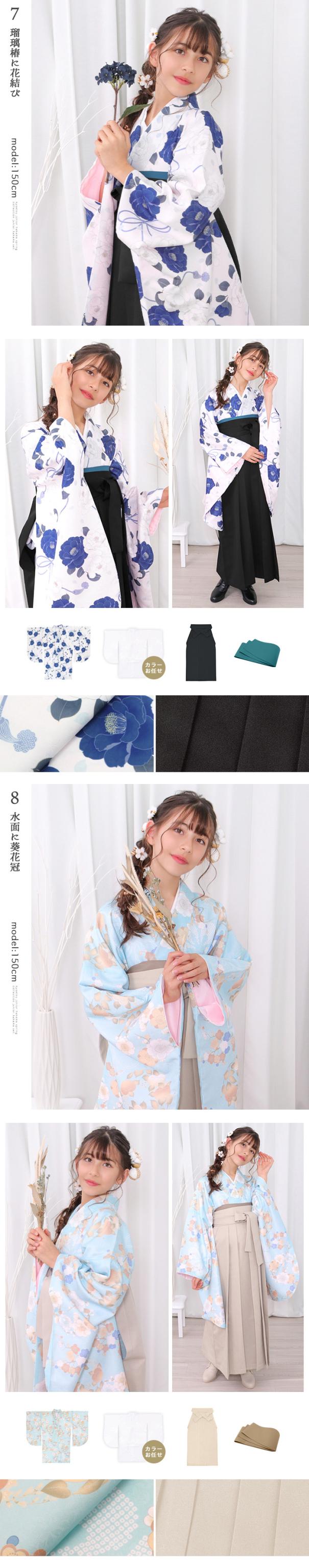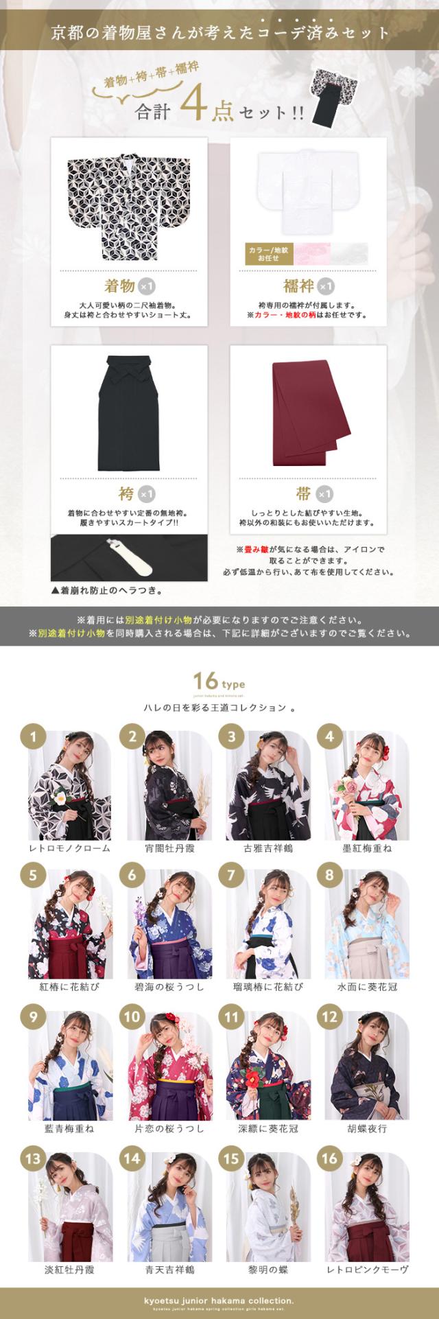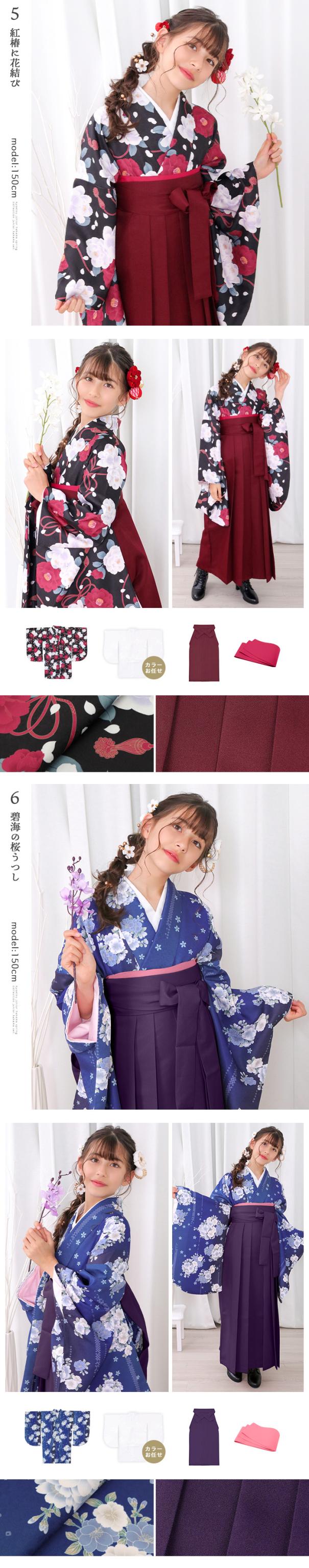 (袴4点セット 華やかEF ジュニア) 袴セット 卒業式 小学生 4点セット 着物 袴 帯 長襦袢 卒服 二尺袖着物 はかま 振袖 和服 和装 ジュニア ガールズ 女の子 謝恩会 セレモニー パーティー 大学生 大学 中学生