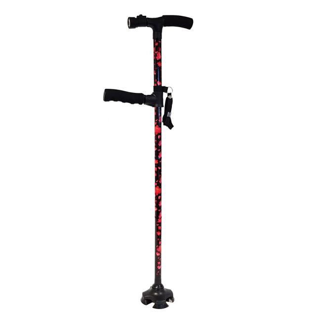 【SG付きで安心!自立式の多点杖+補助ハンドル付き】手を離しても倒れない多点杖、従来の自立式杖ケーンセーフに補助ハンドルが付いたケーンセーフプラスです。安心のSGマーク認定付き。おしゃれな花柄でお洋服とのトータルコーディネートも楽しめます。