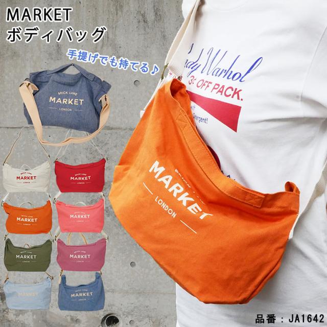 マーケット 2WAY ボディバッグ ショルダー トートバッグ キャンバス B5対応 帆布 コットン トートバッグ ショルダーバッグ 斜め掛け 通学 通勤 旅行 MARKET マザーズバッグ シンプル レディース ユニセックス【JA1642】