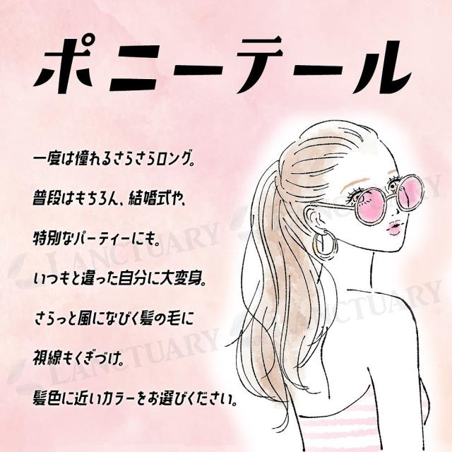 髪の短い方も髪を結ぶことができればそこに足して美しいロングポニーテールに大変身。