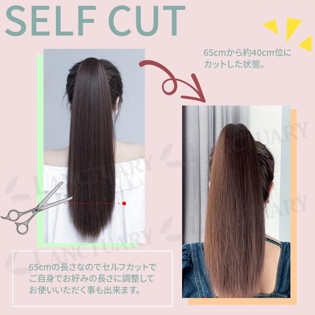 65cmという長さがあるので、セルフカットして長さを調節してご自身のお好みの長さをお楽しみいただく事ができるのも特徴です。