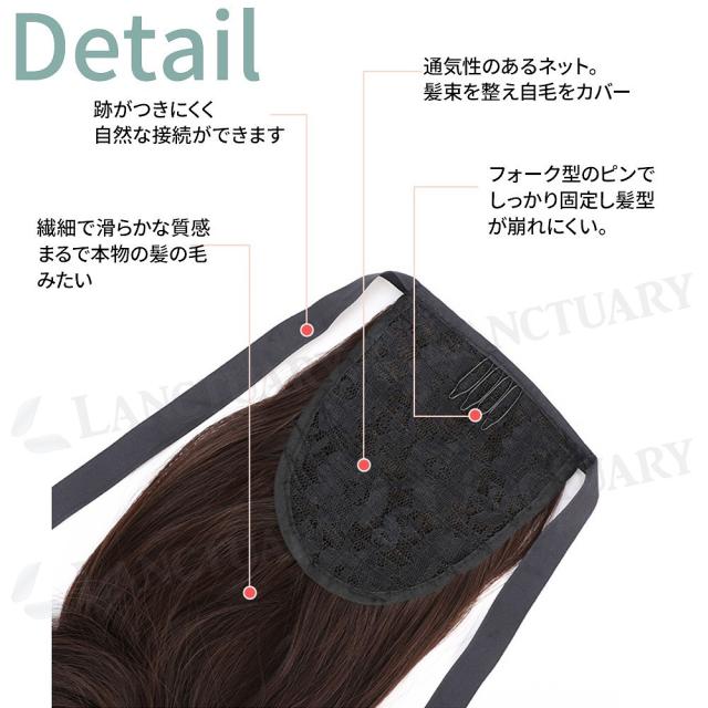 | 商品の説明 | 長くて美しいポニーテール姿もとても簡単に日替わりで楽しむことができる部分ウィッグが登場です。 髪の短い方も髪を結ぶことができればそこに足して美しいロングポニーテールに大変身。 毎日のヘアスタイルに飽きた時。 また結婚式やその他パーティーなど特別な日にもおススメです。 しっかりと固定できるので、ダンスなどのステージに立つときにあわせてヘアスタイルを決めるのも◎ 色々なシーンで活用ができます。 髪の色も合わせやすく4色展開でご自身の髪色に近いお色を選んでいただけるかと思います。 65cmという長さがあるので、セルフカットして長さを調節してご自身のお好みの長さをお楽しみいただく事ができるのも特徴です。 |