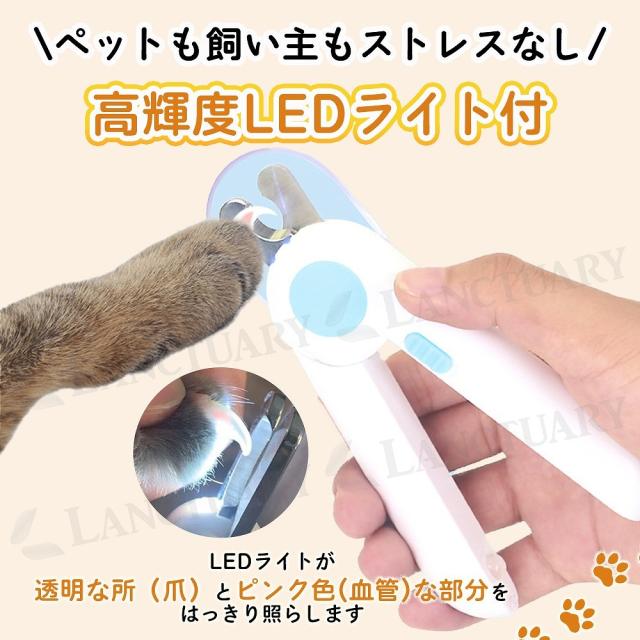 ペット用爪切り ペット用ネイルケア 高輝度LEDライト付き 滑りにくい コンパクト 取り外し可能飛散防止カバー付き 爪やすい内蔵 電池長持ち ピンク ブルー agesugi_sfp