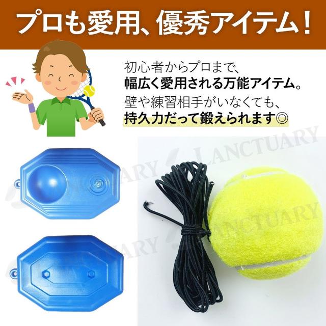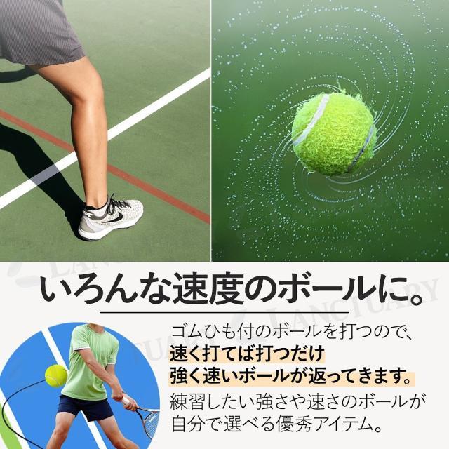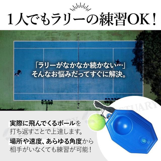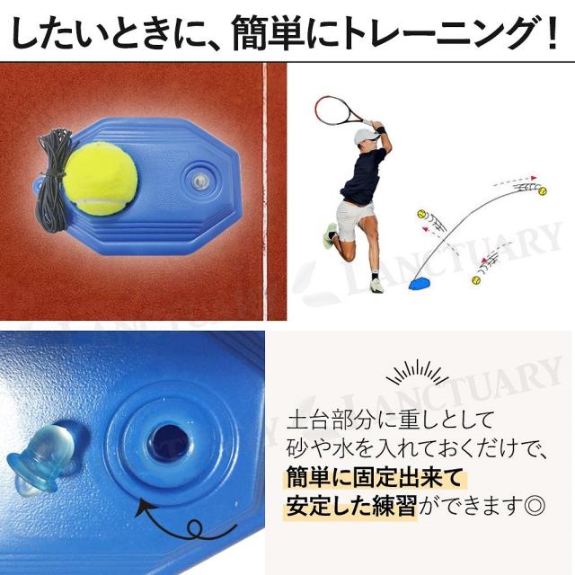| 商品の説明 | お家でも簡単トレーニング! 素振りや壁打ち、サーブやストローク…。 いろんな練習がいつでもどこでもすぐにできる快適なテニス練習機! 砂や水を入れておくだけで、簡単に固定出来て 安定した練習ができます◎ 一人でもラリーの練習OK! 「ラリーがなかなか続かない…」 そんなお悩みだってすぐに解決。 実際に飛んでくるボールを打ち返すことで上達します。 場所や速度、あらゆる角度から相手がいなくても練習が可能! ゴムひも付のボールを打つので、速く打てば打つだけ 強く速いボールが返ってきます。 練習したい強さや速さのボールが自分で選べる優秀アイテム。 場所を選ばず、いつでも使える。 テニスコートや体育館に行かなくても、ひもの長さが収まる場所ならすぐに使える簡単練習機。 壁打ちもしなくていいので、騒音やご近所迷惑にも配慮できます◎ 最近テニスを始めた方や、運動不足で悩んでいる方、 もっとテニスがうまくなりたい方への贈り物としても最適! |