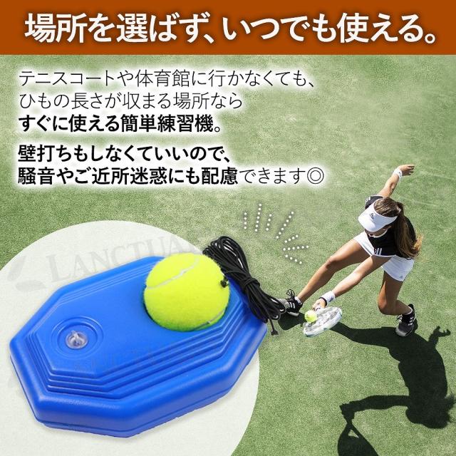 テニスコートや体育館に行かなくても、ひもの長さが収まる場所ならすぐに使える簡単練習機。