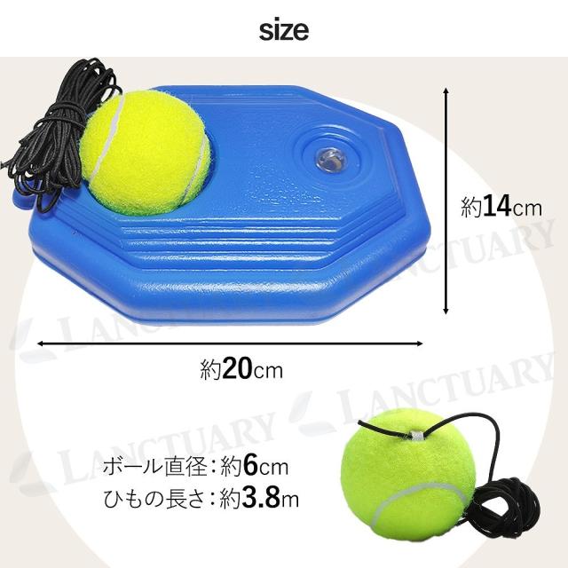 | 主な仕様 | 【サイズ】 ・台座 約14cm×約20cm 厚さ:約5cm ・ボール 直径:約6cm ・ひもの長さ 約3.8m 【仕様】 台座、ひも付きボール ※硬式テニス向け練習用模擬ボールです。 |