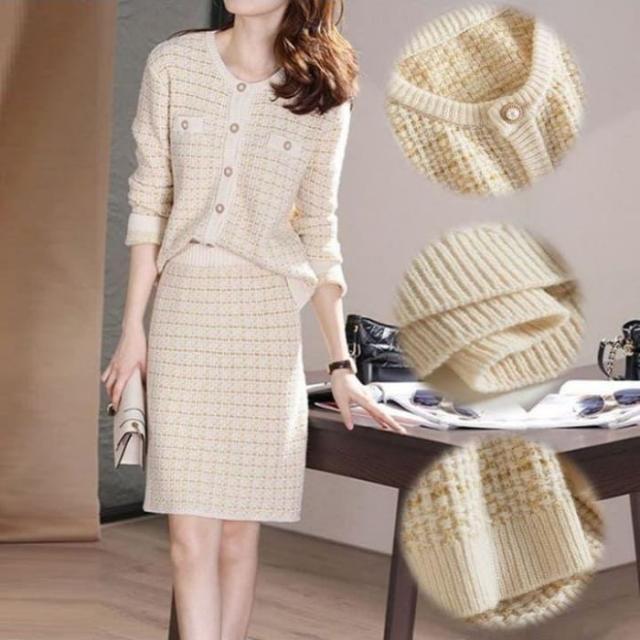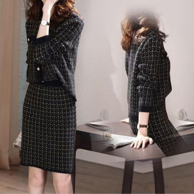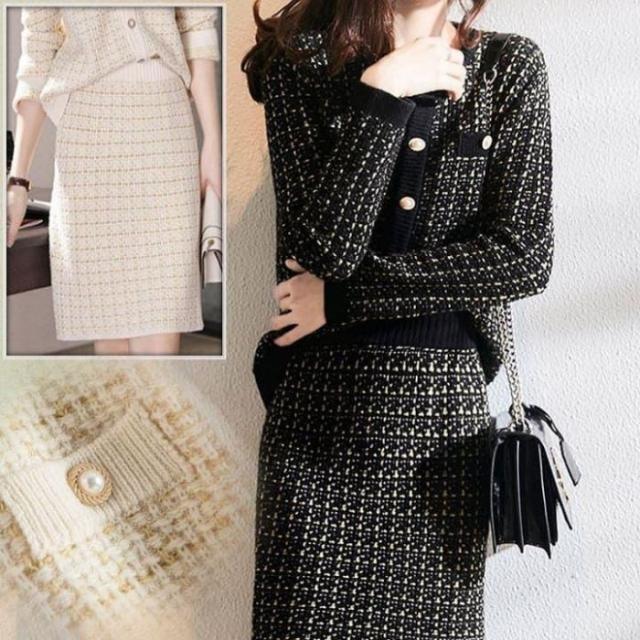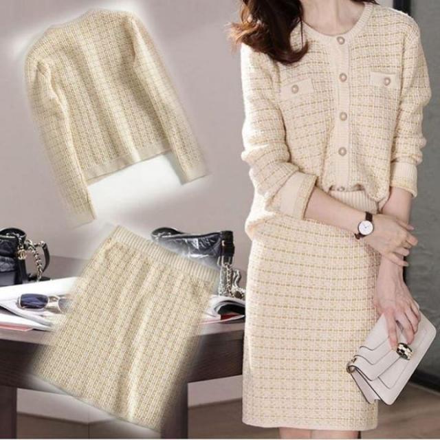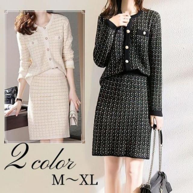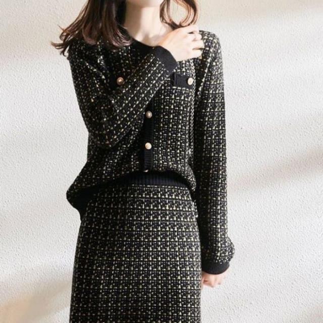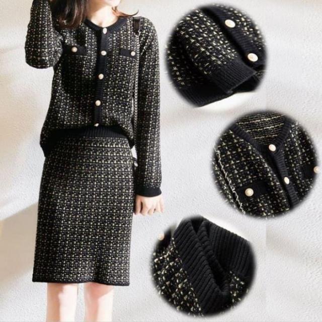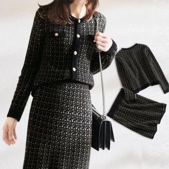 セットアップ レディース ツイード ニット スカートスーツ フォーマル お呼ばれ 40代 50代 60代 秋冬春