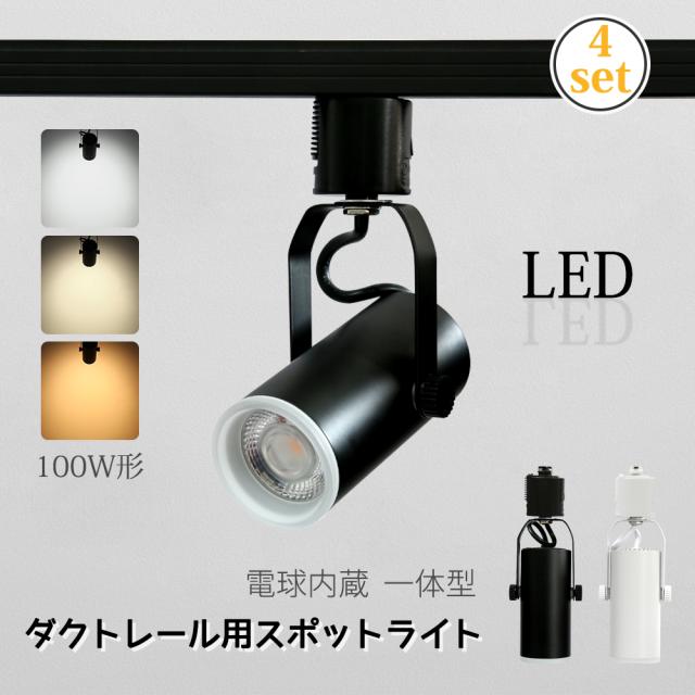 LED一体式スポットライト ダクトレール用 100W形相当 4個セット ライティングレール用スポットライト インテリア照明 取付簡単 照明器具 屋内照明 電球不要