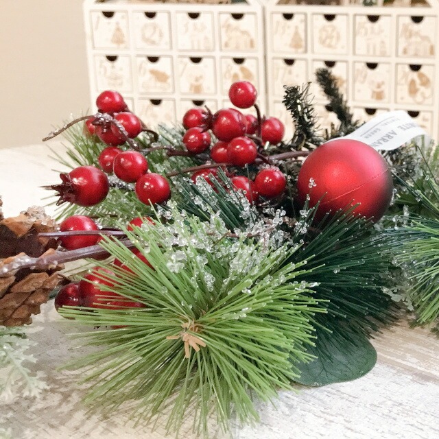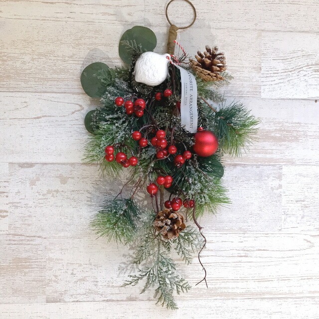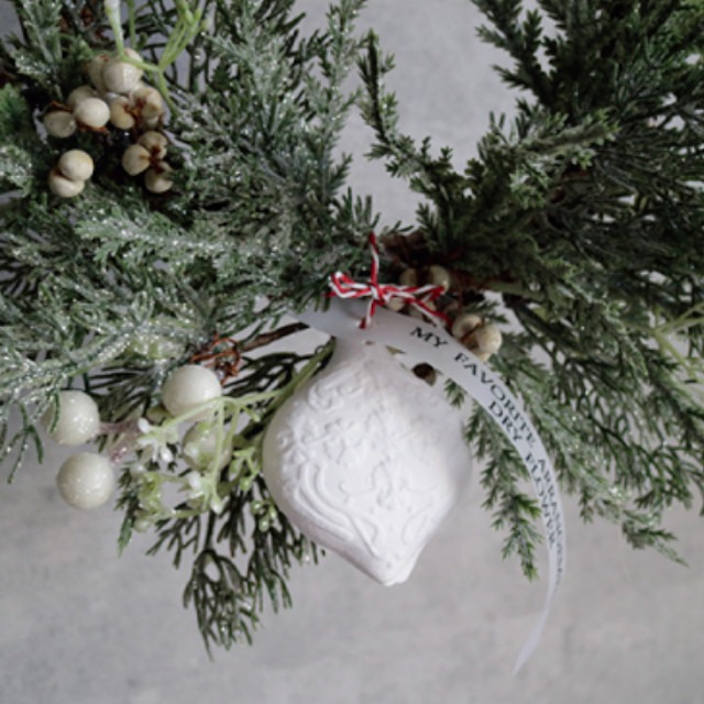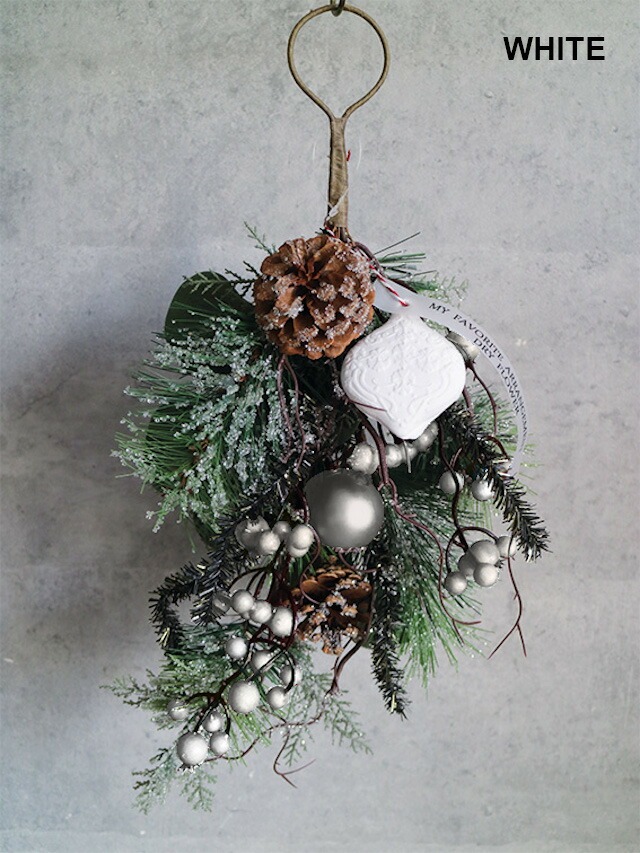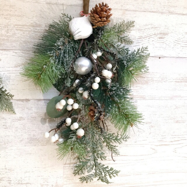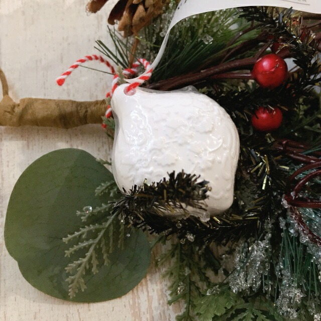 クリスマスシーンにぴったりなオーナメント付きのクリスマススワッグ