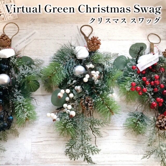 Virtual Green Christmas Swag V04-5512 V04-5513 V04-5514【グローバルアロー global arrow アーティフィシャルフラワー 造花 ブーケ クリスマスオーナメント 迎春 新年 お正月 正月飾り お節 リース 母の日 父の日 敬老の日 クリスマス xmas】