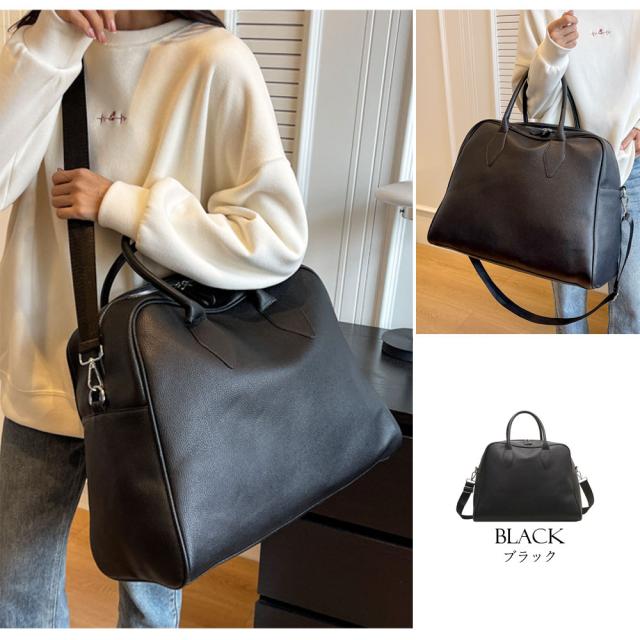 【3WAY/斜めがけ/とにかく大きいビッグサイズ◎/大容量レザータッチスクエアボストンバッグ】