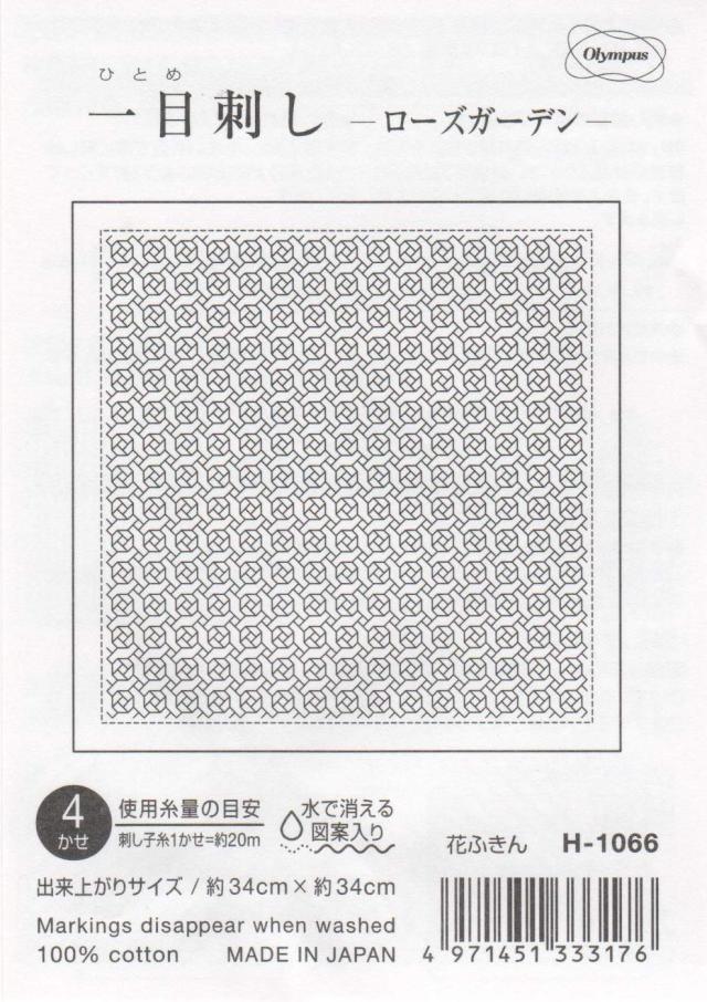 ◆商品名:オリムパス製絲 刺し子布パック 一目刺しの花ふきん (白) ローズガーデン H-1066