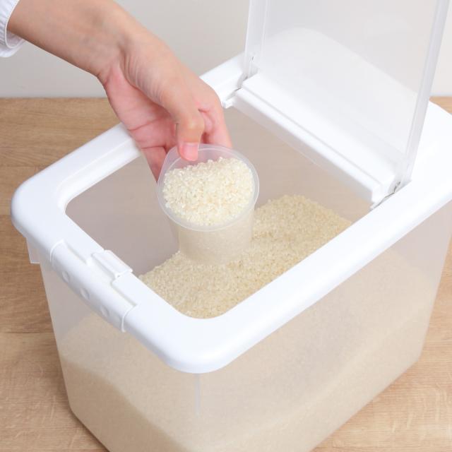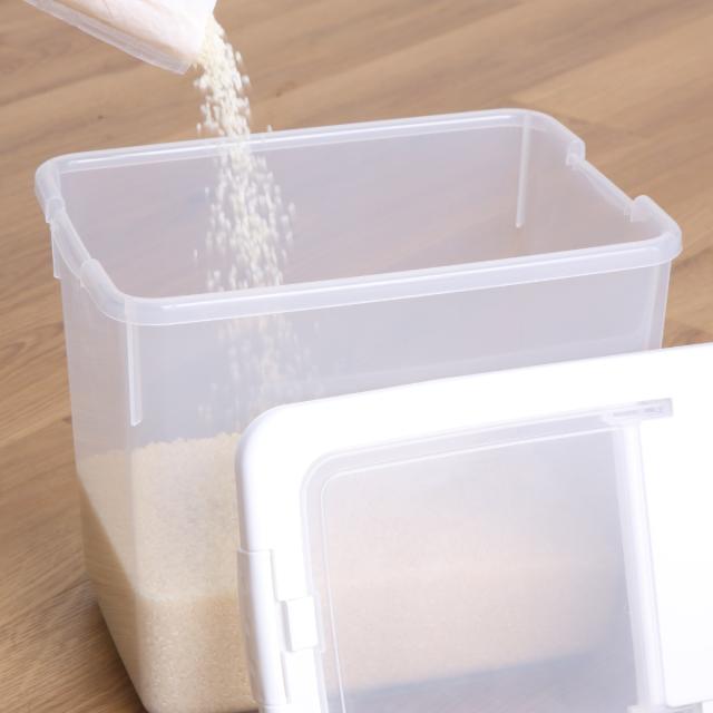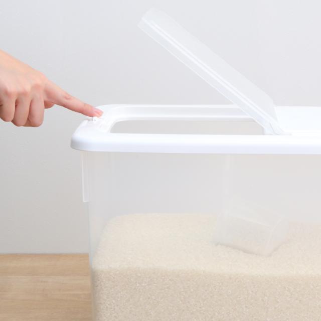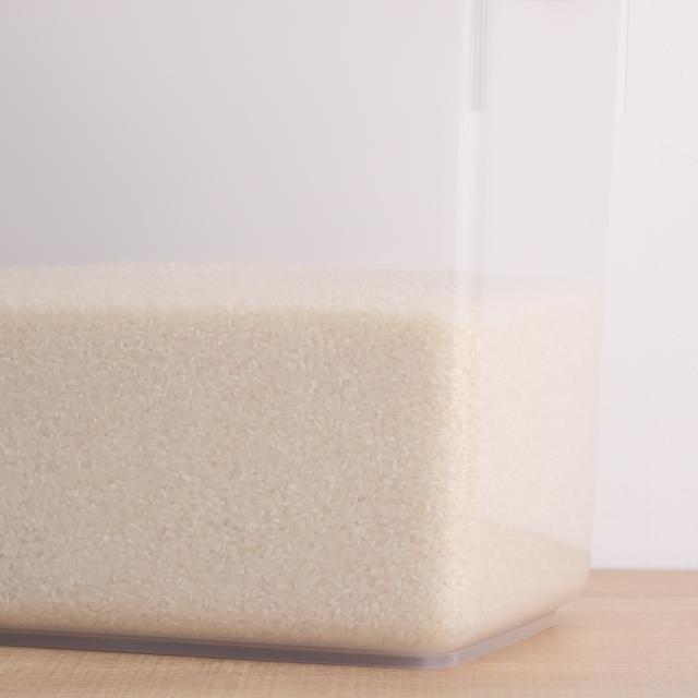ケースは透明なのでお米の残量が一目で分かります。中の状態が見えることで、買い足しのタイミングがわかりやすく、買い忘れ防止にも繋がります。
